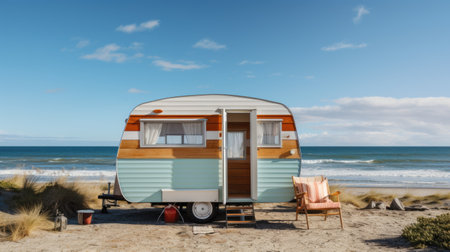 Retro Roadhouse. The Classic American Camper Meets Rustic Porch Elegance. Generative AI