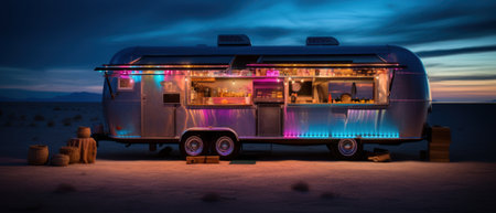 Food truck with neon light. Generative AI