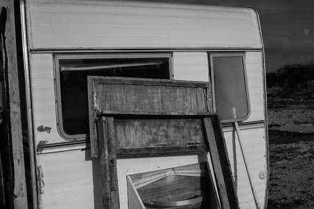 old trailer at a construction site