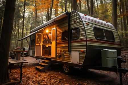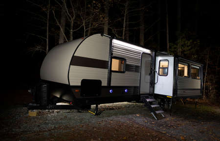 Trailer at a campsite at North Carolina's Jordan Lake at night