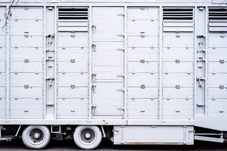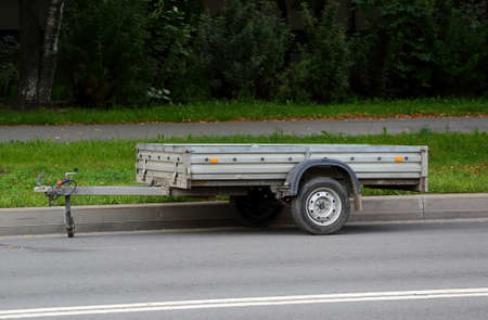 White car trailer parked on street parking. High quality photo