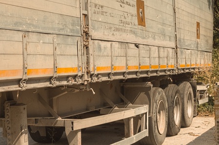 Truck transport. View of the tarpaulin covering the semi-trailer of the truck.