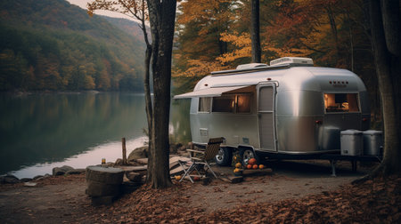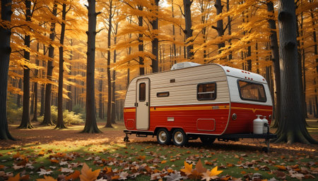 Cozy Trailer of mobile home or recreational vehicle. Autumn.