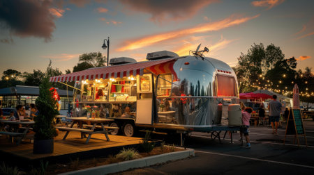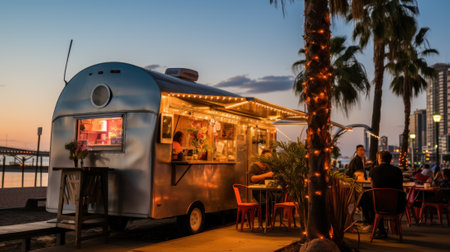 A food truck is parked on the side of the road. Generative AI image.
