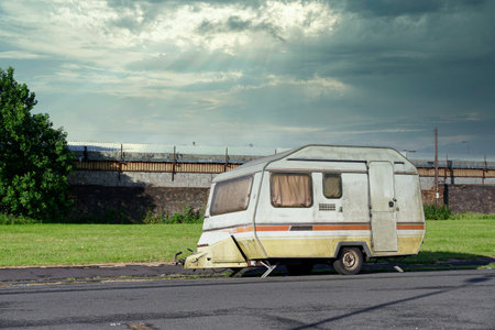 Forgotten Abandoned retro caravan. Old travel. Generate AI