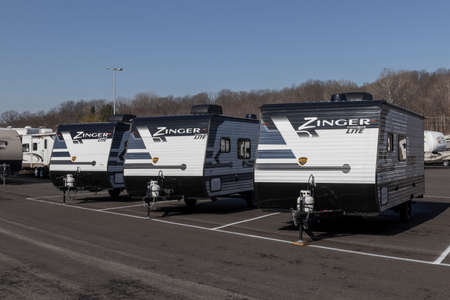 Peru - Circa March 2022: Zinger Fifth Wheel Travel Trailers. Zinger RV is a subsidiary of CrossRoads RV and manufactures fifth-wheel trailers.