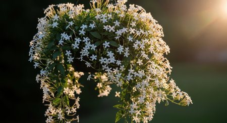Close up of Hanging plant in warm sunlight of morning.