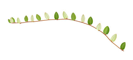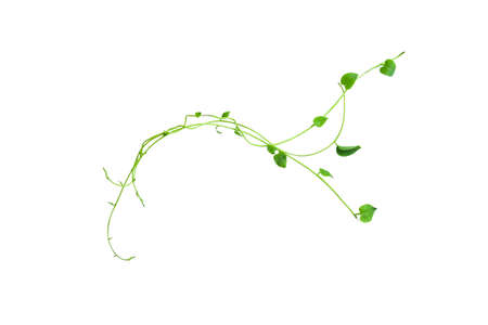Floral Desaign. Twisted jungle vines liana plant with heart shaped green leaves isolated on white background, clipping path included.