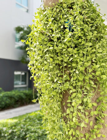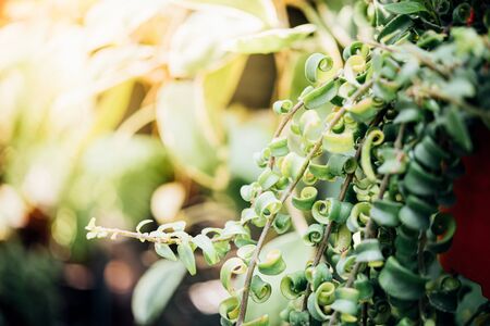 Dischidia nummularia or String of nickels on the tree with sunlight