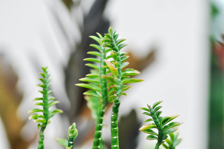crassula sprouts on the windowsill reach for the light