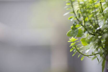 Green leaves with white Concrete floor