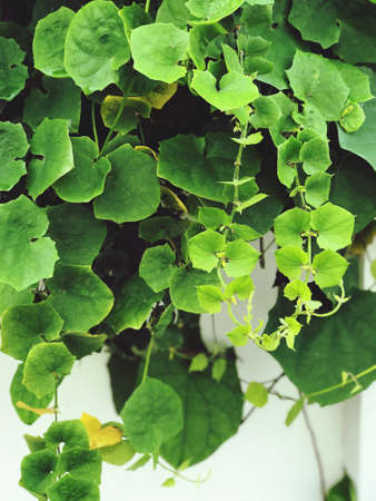 Heart shaped leaves closeup. Vine of heart shaped leaves.
