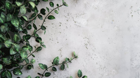 Green vines on white concrete wall with textured surface