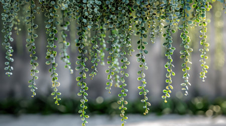 Delicate leaves dangle from vines, adding tranquility to a peaceful outdoor space.