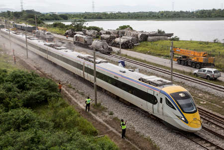 Electrical Train EG 9247 drive passes the Batu Gajah Train Accident, the worst train crash of Malaysia on 28th Oct 2016 in Perak, Malaysia