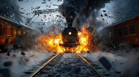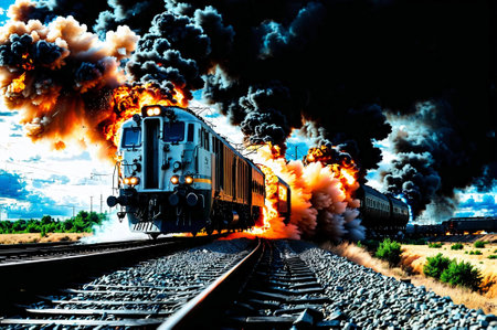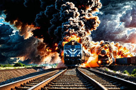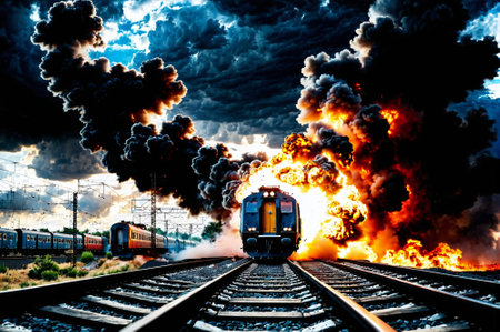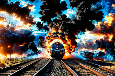Catastrophic Scene: Train Explosion and Toxic Blaze