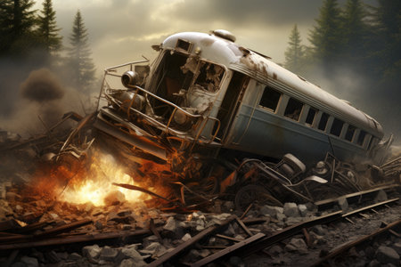 A Diesel train derailment accident at railway. ai generative