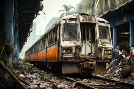train accident. Train derailment. Neural network AI generated.