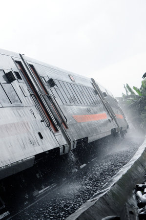 Indonesian train passing during the rain