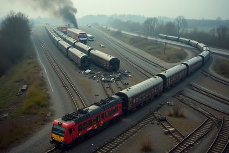 derailment aftermath with scattered cargo, created with generative ai