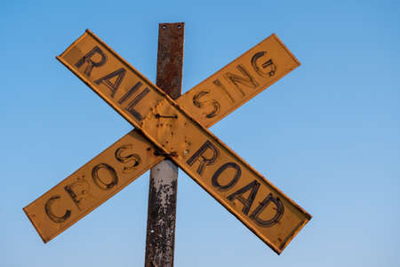 Old and Worn Yellow Railroad Crossing Sign in Victoria Falls, Zimbabwe