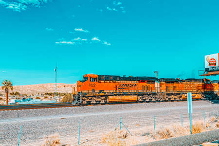 Flagstaff, Arizona, USA - September 22, 2018: Freight train BNSF Railway Companies on a sunny day in Arizona.
