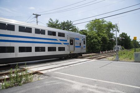 MTA Long Island Railroad train passing a level crossing at Mattituck USA