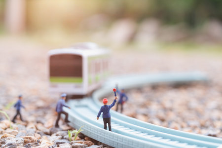 Miniature people : Railway staff are working at railway , Travel by train concept