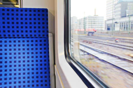 Comfortable seat nearby german train big window with city view