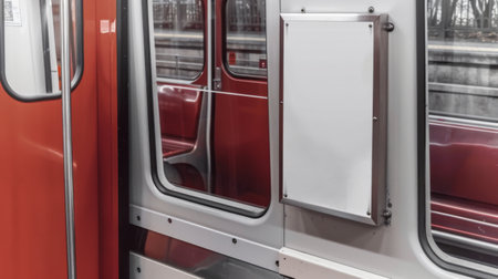 An empty train interior showcasing modern design with spacious seating and soft lighting, perfect for transportation, travel, and commuting visuals.