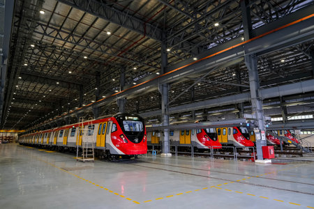 KUALA LUMPUR, MALAYSIA - MARCH 16, 2023: Malaysia Mass Rapid Transit (MRT) Putrajaya Line train. MRT alleviate the severe traffic congestion in the KL metropolitan area.