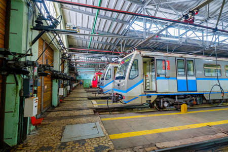 Moscow, Russia - April 15, 2018: Subway train metro depot Krasnaya presnya interior