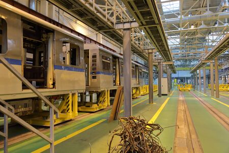 Mytishchi, Russia - February 21, 2017: Rail car assembly plant for the metro trains. Mytishchi Metrovagonmash factory.
