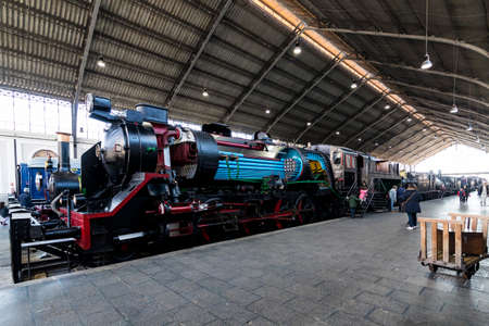 DEC 10, 2012 Saitama, JAPAN - Old locomotive train models exhibits in railway museum of Omiya.