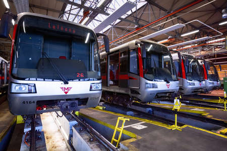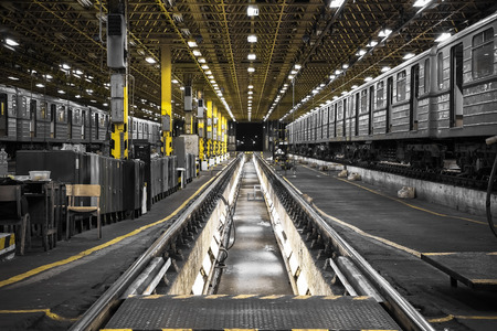 Moscow, Russia - September 27, 2019: Inside the Kaluzhskoye electric depot for the maintenance and repair of passenger trains and cars of the city metro