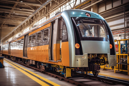 Train assembly plant. Train manufacturer. Train factory. Generative AI