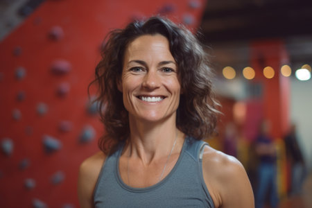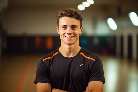Young sportswoman smiling and looking at camera indoors