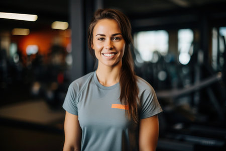 Nice girl at the gym looking at camera, curvy style, AI generated