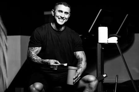 Muscular Handsome Bodybuilder With Pills and Dope for Copy Space