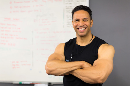 portrait of handsome middle aged gym coach