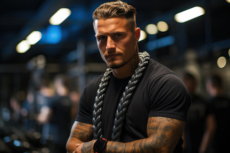 The close up picture of the trainer that has been work out in the gym, the training gym is the place for activity about sport, the trainer require knowledge of exercise science and experience. AIG43.