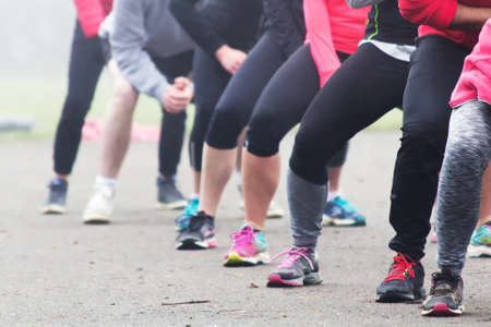 People doing keep fit exercise in the park