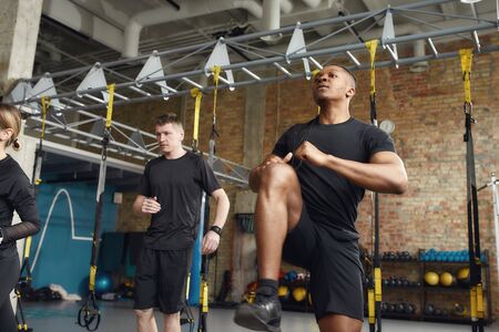 Faster. Stronger. Athletic african american man in black sportswear looking focused while working out in industrial gym