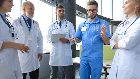 Group of doctors and nurses working together in modern hospital office. Medical and healthcare concept.