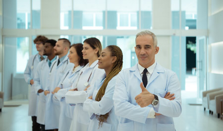 Team of doctors working in modern hospital. Medical healthcare staff and doctor service.