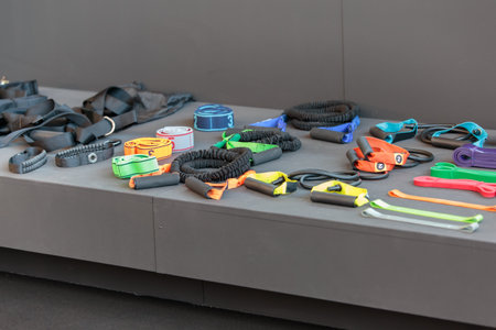 Various Kinds of Ropes and Elastics: Fitness and Gym Equipment.
