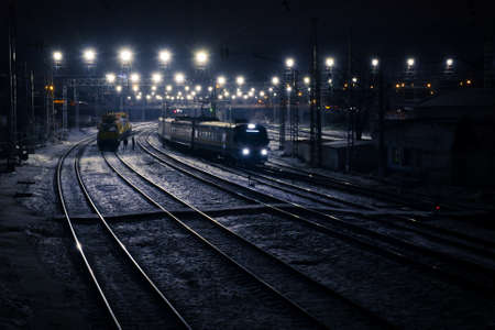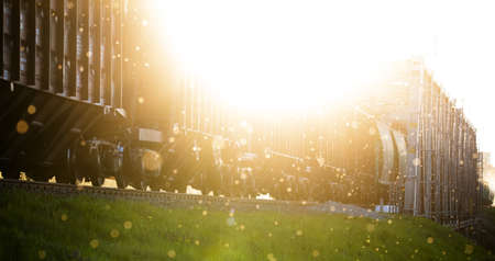 Train and wagons on the railway tracks at the station, they carry out cargo transportation