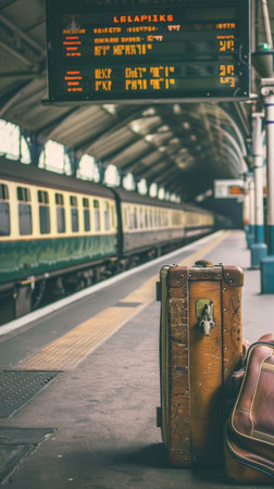 An empty railway platform with tracks leading off into the horizon, evoking a sense of anticipation and the promise of travel and exploration.