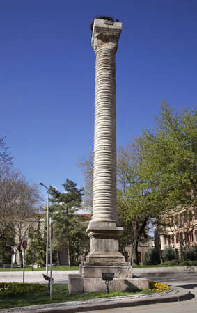 ISTANBUL, TURKEY - JULY 26, 2019: Ancient Byzantine Column of Constantine in city of Istanbul, Turkey