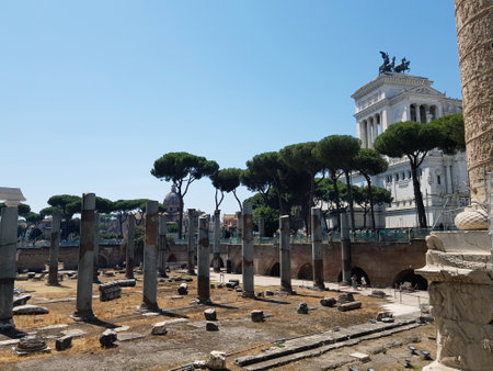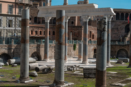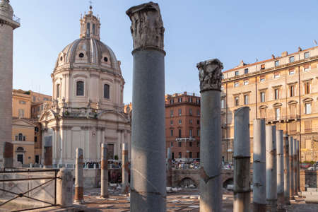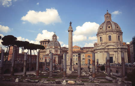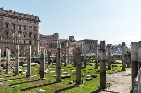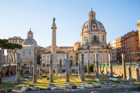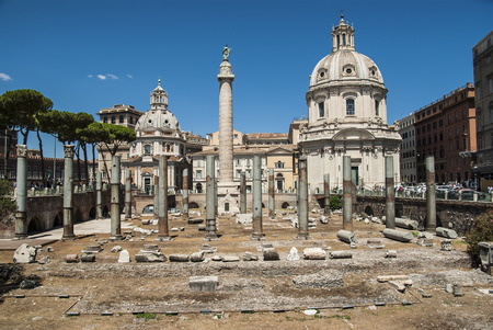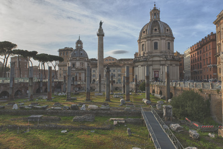 ROME, ITALY - APRIL 8, 2016: Emperor Trajan Forum 106 - 112 AD AD, measuring 300 metres (980 feet) long and 185 metres (607 feet) wide